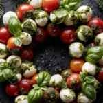 This Caprese Christmas Wreath not only captivates with its vibrant appearance, but it also embodies the flavors of the season in every bite. Whether as a centerpiece for your holiday table or a delightful dish to share with loved ones, this recipe is sure to spread joy and festive cheer. So gather your ingredients, unleash your creativity, and enjoy the warm moments that come from cooking and sharing food. Happy holidays, and happy cooking!