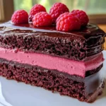 A rich and elegant dessert featuring layers of dark chocolate and fresh raspberries, perfect for celebrations or cozy nights in.