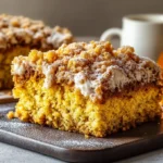 A soft and moist pumpkin coffee cake infused with warm spices, perfect for fall gatherings or cozy afternoons.