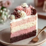 Delicious Neapolitan Cake with layers of chocolate, vanilla, and strawberry