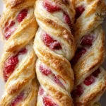 This pastry is not only visually stunning but also a delightful combination of flavors and textures. The subtle tang of cream cheese contrasts beautifully with sweet strawberry jam, while the puff pastry adds an airy crunch that makes each bite irresistible. Whether you’re enjoying it on a quiet morning or impressing guests at a gathering, each slice sparks joy and smiles, making it a recipe worth sharing.