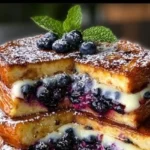 A decadent stuffed French toast with creamy blueberry filling, perfect for special breakfasts.
